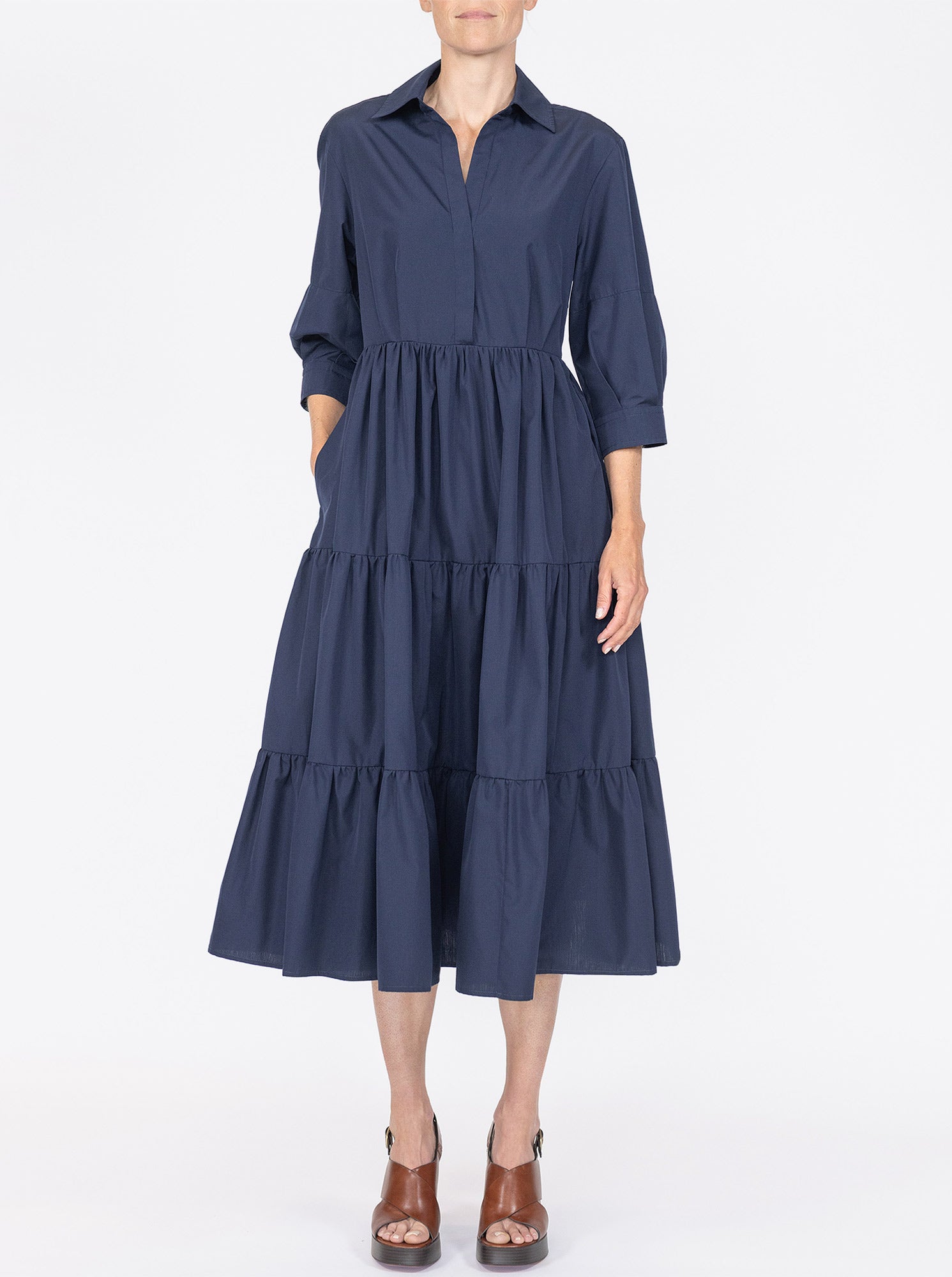 MARSEILLE Tiered dress Navy
