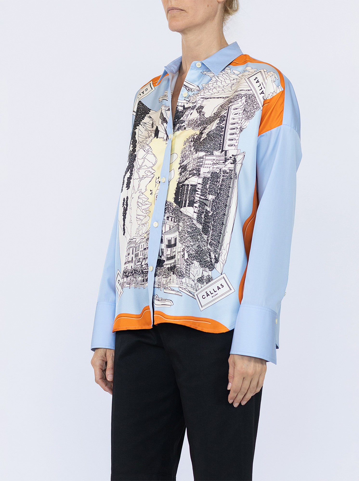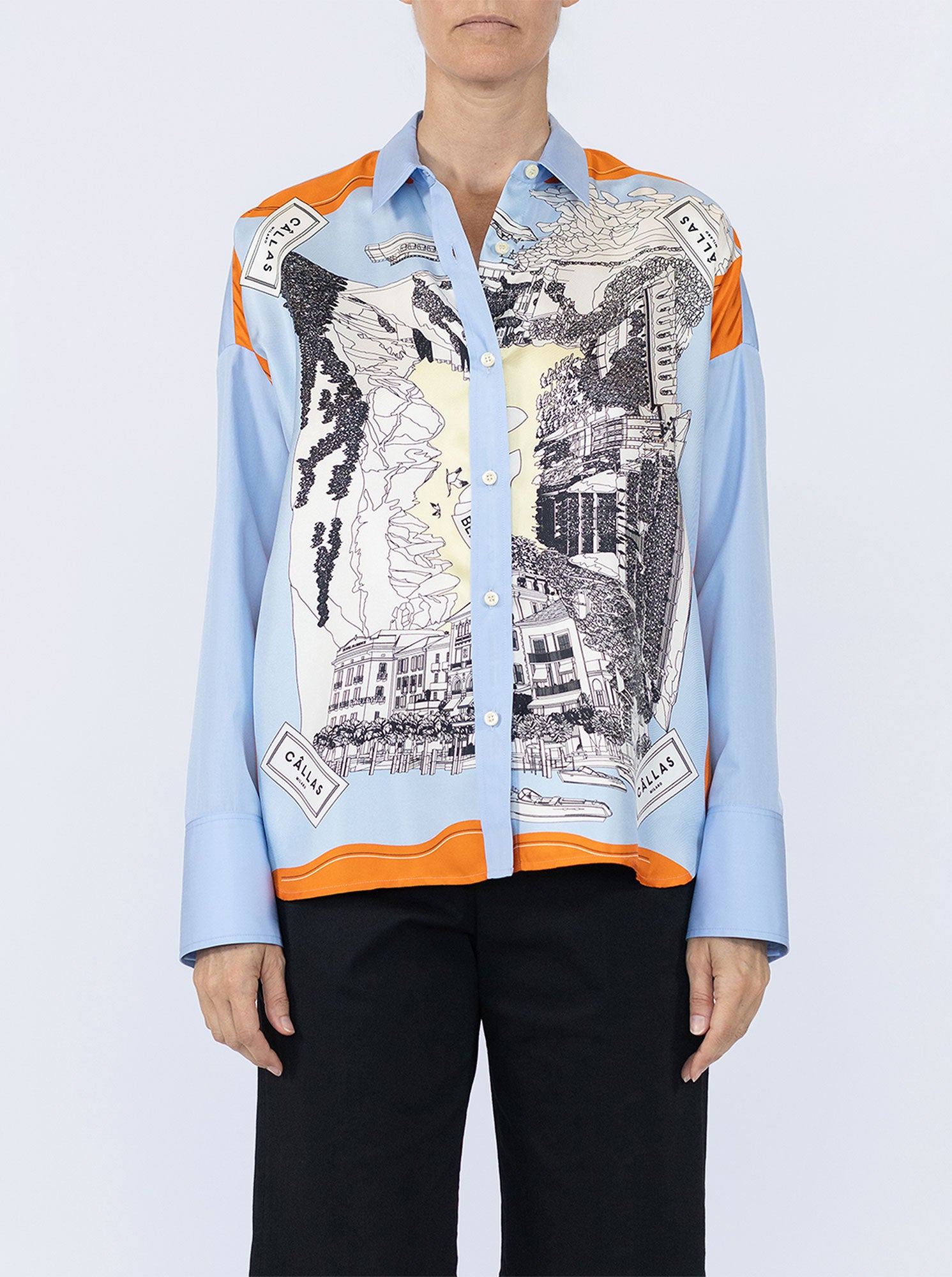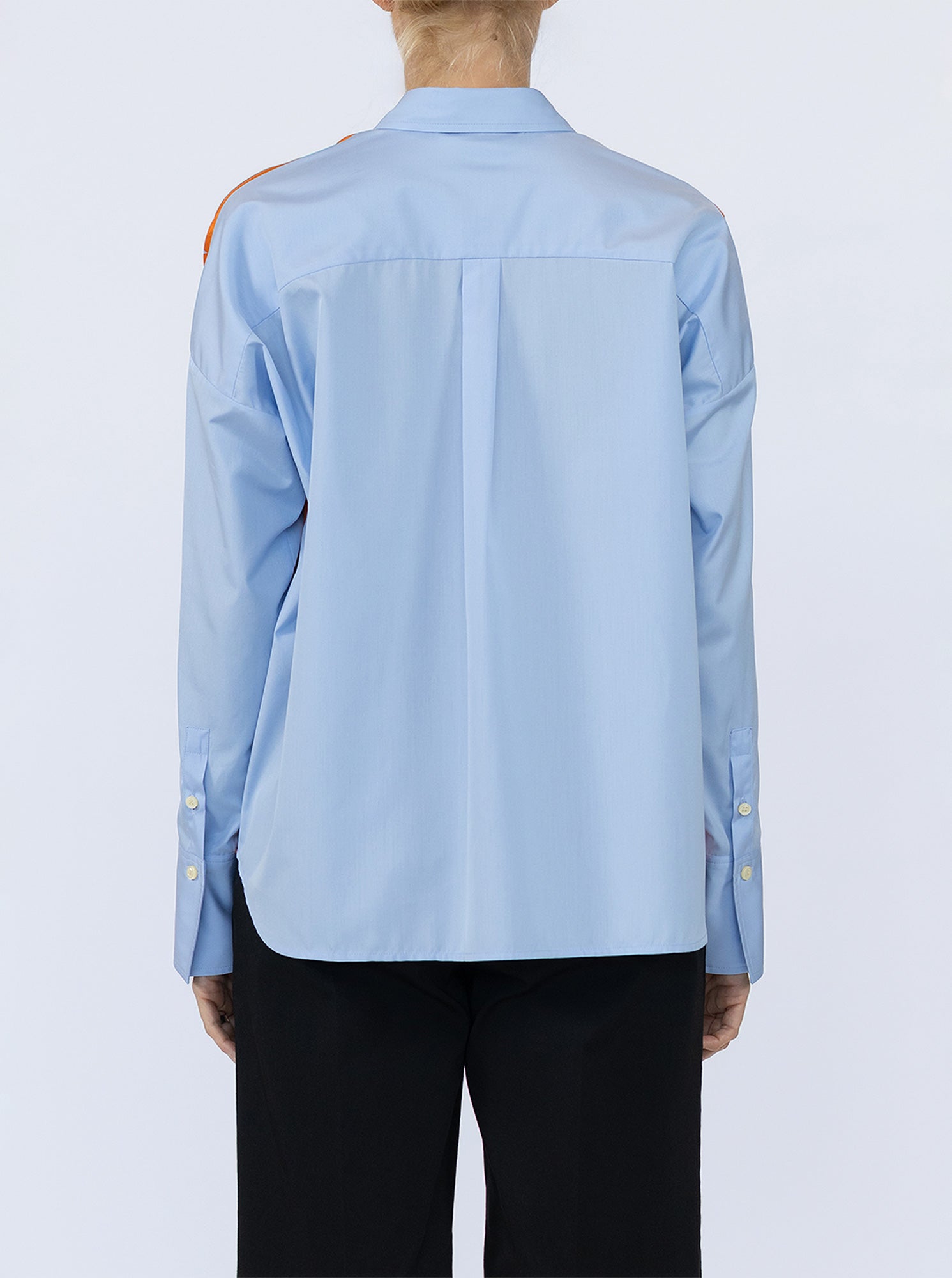 SIRENE Silk scarf front shirt Pale Blue/Orange