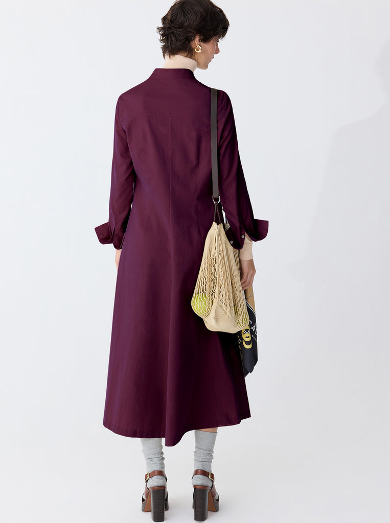 The Genny is a button front, long sleeve version of one of the favorite dresses in the Câllas collection, the Noor. Featuring a fit and flare silhouette, a-line to calf length hem. With slim sleeves ending in shirt button cuffs. There are tucks at the front of the dress, which creates a flattering fit. The Genny is made from an stretch cotton mid-weight poplin. Unlined